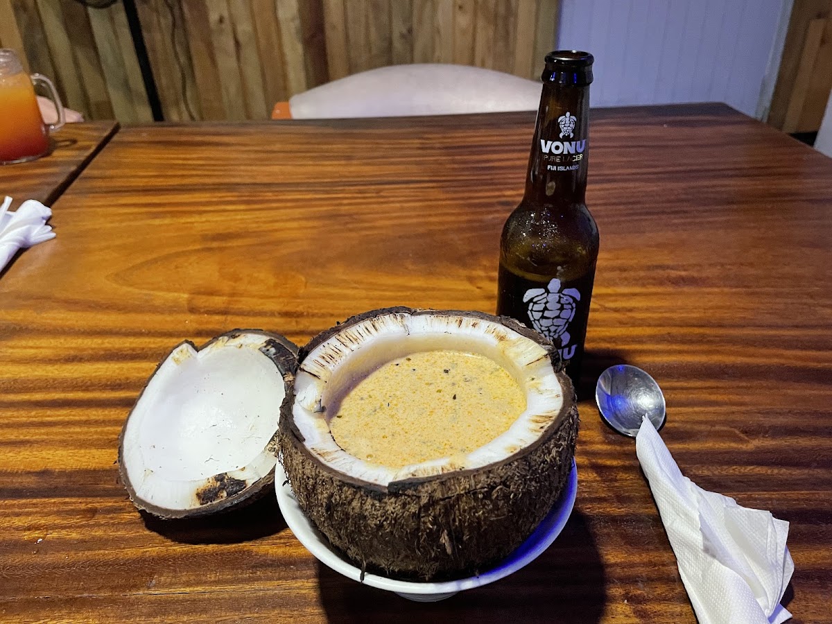 Good quality food, fair portions. Staff are helpful and friendly. Kitchen service is Fijian time, so some visitors may consider it a bit slow. Decor is basic outdoor beach hut. Order from Beach Bar & Grill menu or from Crab Shack menu. (Crab Shack is across the street.) We had scallops starters (3 pieces per serve), seafood chowder, garlic mudcrab (from across the street) and sirloin steak. All food was very very tasty. We particularly liked the sirloin and garlic mudcrab.